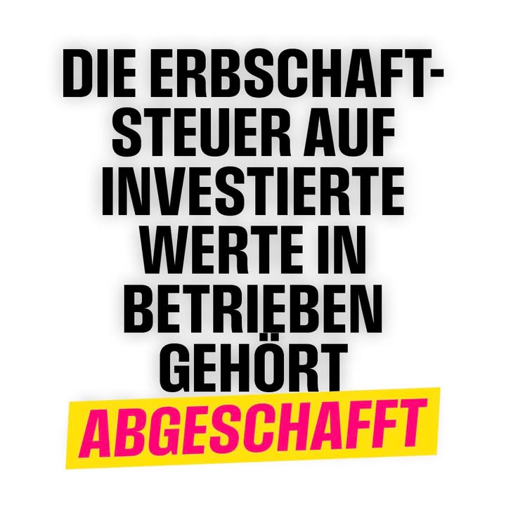 Deutschland hat eine riesige Stärke - und das ist unser Mittelstand. 💪Unternehmen, die Jobs und Innovation schaffen. Die Steuerpläne der SPD treffen nicht die Konzerne, sondern unsere Familienbetriebe, die in der Krise zu kämpfen haben. Die Erbschaftsteuer auf Werte, die in Betrieben investiert sind, gehört abgeschafft, fordert daher unser Bundesvorsitzender Christian Dürr.